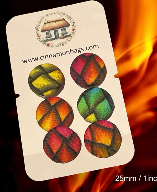 A brand new product from Cinnamon Embroidery, these light metal buttons are covered with a lovely cotton fabric with a dragon scale design.