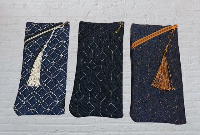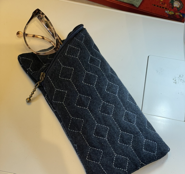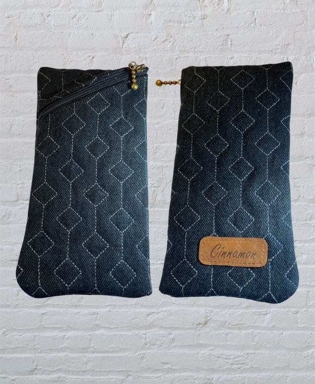 A zip-top, slimline quilted pouch which has a multitude of uses! Made from quilted denim and fully lined, this pouch meets so many needs from glasses case to storage for pencils, make up brushes or even crochet hooks.