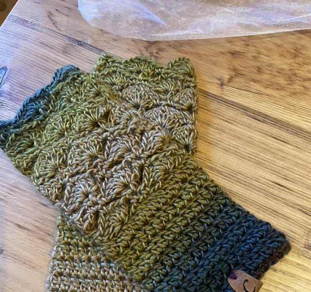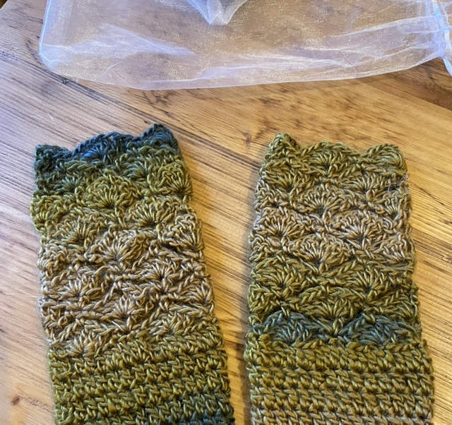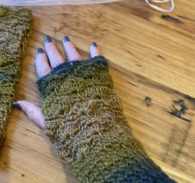 Completely handmade by me right here on the beautiful Isle of Man, these super gloves are made in a soft and silky variegated yarn and are slightly longer- what they used to call bracelet length.