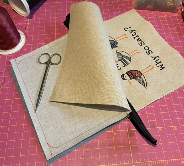 They are embroidered on linen look fabric and lined with a soft blue Chambray. This pouch has a smart black zippered top and is finished with a lovely starfish.