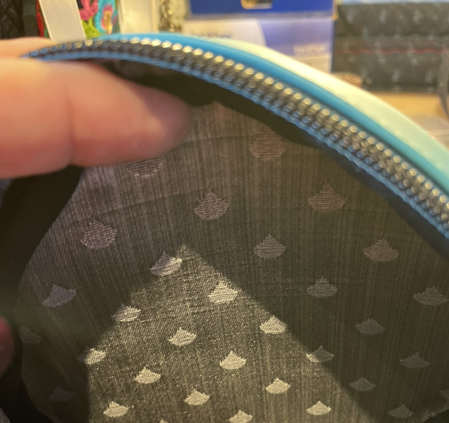 The panels are joined by a deep gusset in two shades of teal faux leather. The hardware is matte black which complements the black toothed teal zipper. I particularly like the black heart zipper pull too!