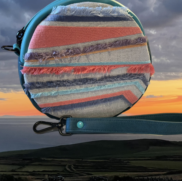 Inspired by a lovely sunset here on the beautiful Isle of Man, this circular wristlet is larger than the others I have made at 7 inches across. This means there's plenty of room for your phone and other stuff without having to sacrifice style for function.